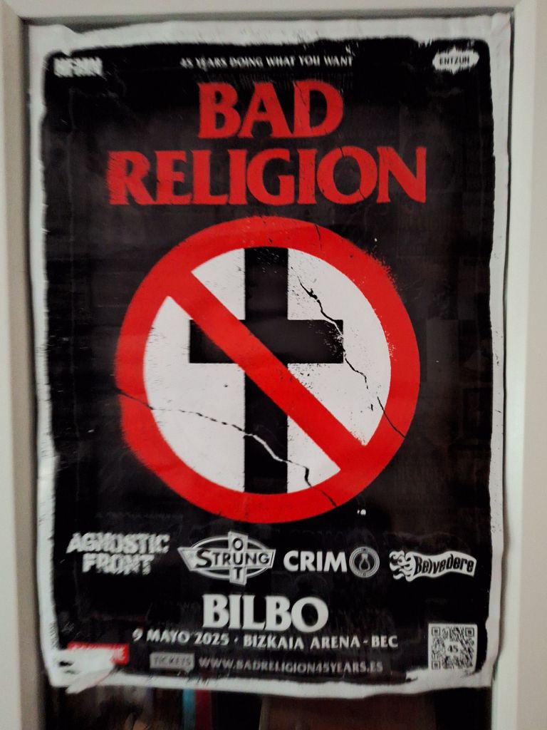 Receta para el odio. No, no queremos odiar, ni sufrir. Queremos vivir y ser felices. Pero no siempre toca. Y tocaba, sin embargo, hasta cierto punto, en el concierto. El tú-pah-tu tu-páh de Bad Religion en directo es formidable: Struck a Nerve, You Are (The Government), Generator, No Control, You, Do What You Want, Faith Alone, Modern Man, I Want to Conquer the World, 21st Century Digital Boy… Estas son algunas de las canciones que sonaron. A Ristra y Morcillo les molaban más las de los LPs Suffer, No Control, Against the Grain y Generator, pero les gustaban todas.